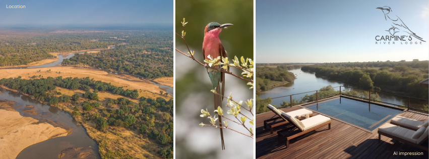 The lodge’s avian name is a celebration of the property’s unique location which is home to the world’s largest Carmine Bee Eater colony, located directly opposite the lodge on the Luangwa Wafwa.