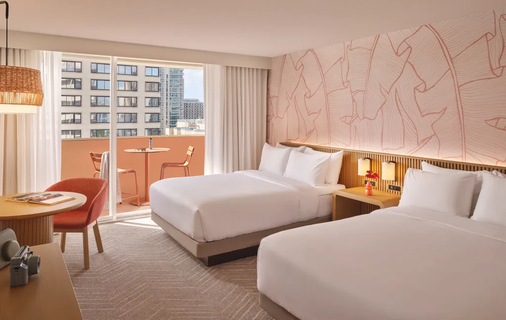 The Ambassador Hotel’s signature “This Is How We Waikiki” approach captures the essence of local hospitality, embracing a culture of warmth, insider knowledge, and effortless moments of connection. This philosophy is reflected in the hotel’s design and services, which combine a mid-century modern aesthetic with nods to the property’s origins dating back to the 1960s. The 368-room hotel features a variety of accommodations, including spacious two-bedroom suites and the only lofted bunk-bed rooms in Waikiki, making it a great choice for families and groups. The tropical-inspired interiors bring the island’s natural beauty indoors, with cozy lanais, private retreats, and comfortable lounges for guests to relax.