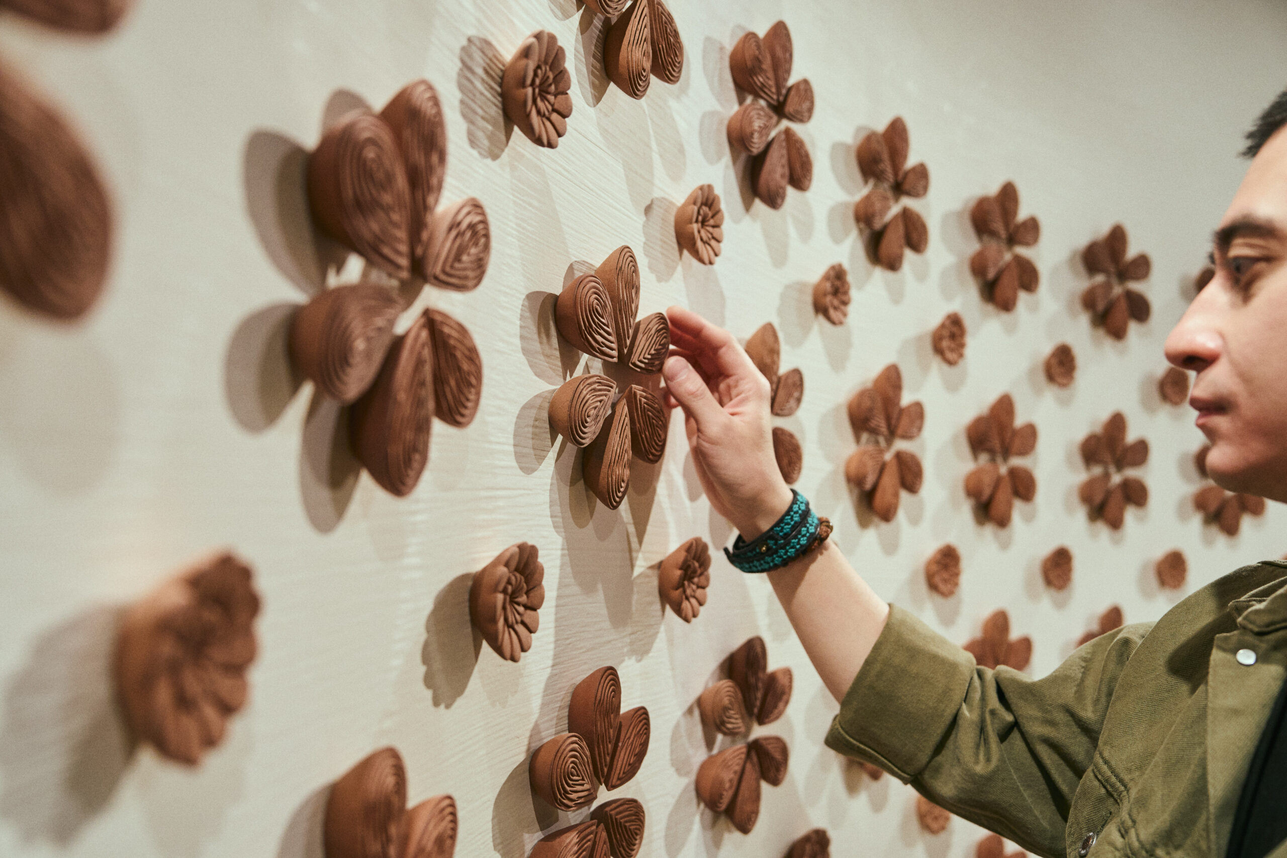 Inside The Lobby, visitors encounter Metamorphic Modulation by Albert Yonathan Setyawan, a large-scale ceramic installation composed of hundreds of handcrafted pieces. The work explores repetition, perception, and spatial transformation, encouraging guests to engage with the piece from multiple perspectives as light and shadow alter its appearance.